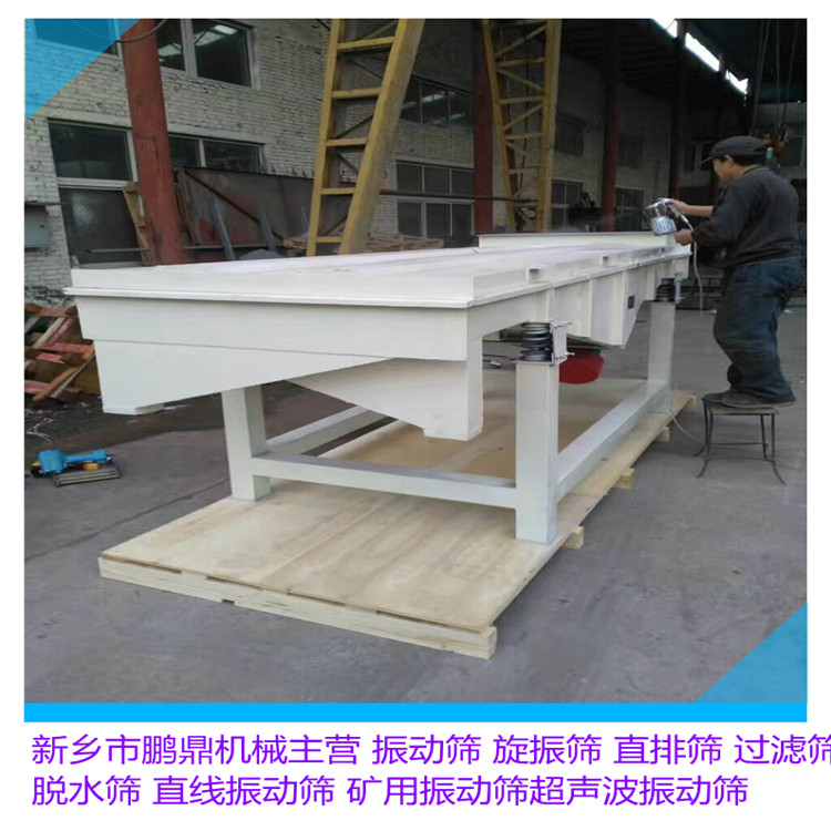 系列直线振动筛为双振动电机驱动。当两台振动电机做同步、反向旋转时,其偏心块所产生的激振力在平行于电机轴线的方向相互抵消,在垂直于电机轴的方向叠为一合力,因此筛机的运动轨迹为一直线。两电机轴相对筛面在垂直方向有一倾角,在激振力和物料自重力的合力作用下,物料在筛面上被抛起跳跃或向前作直线运动,从而达到对物料进行筛选和分级的目的。适用于粒度在